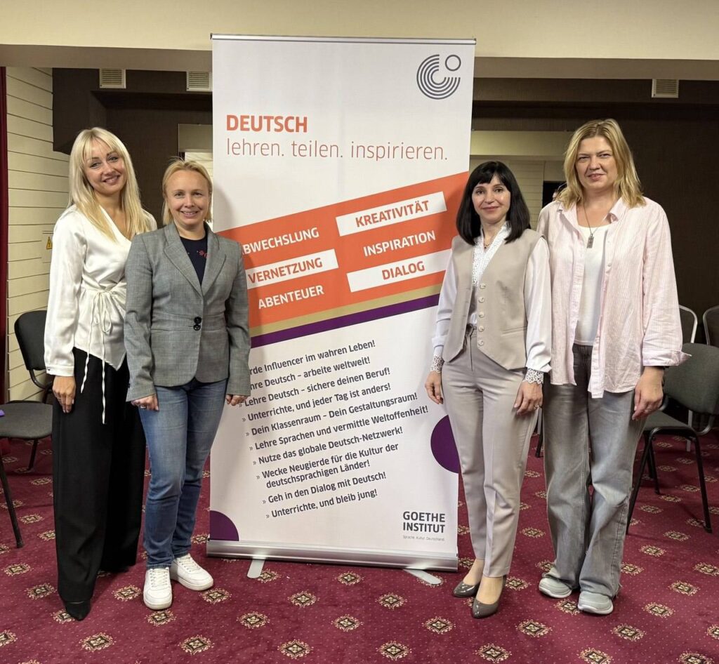 Викладачки кафедри німецької філології Олена Павлишинець Aljona Pavlyshynets і Богдана Петришак взяли участь у зустрічі мережі університетів-партнерів програми DLL від Goethe-Institut Ukraine Зустріч координаторів відбулася 26-28 вересня 2025 року в м. Чернівці спільно з проведенням щорічного засідання Асоціація українських германістів Читати далі